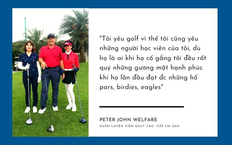 Huấn luyện viên Peter John Welfare hay thường được các học viên gọi thân mật là thầy Peter. Thầy nổi tiếng là một trong những huấn luyện viên tại học viên có chuyên môn cao và nhận được lòng tin của nhiều golfer gửi gắm khi học lựa chọn học viện IGA.