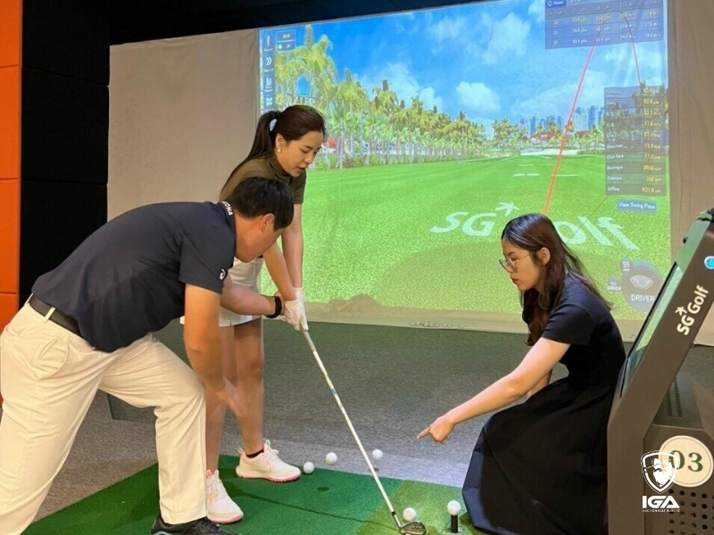 Học viện Golf IGA hiện là đơn vị tiên phong tại Việt Nam trong việc ứng dụng công nghệ golf 3D vào huấn luyện, mang lại cho học viên những buổi học hiệu quả và khả năng cải thiện kỹ năng nhanh chóng. Với đội ngũ huấn luyện viên quốc tế giàu kinh nghiệm, đặc biệt là các chuyên gia hàng đầu từ Hàn Quốc – nơi được xem là cái nôi phát triển golf 3D, IGA cam kết mang đến những kiến thức và kỹ thuật đào tạo đỉnh cao. Nhờ công nghệ này, các huấn luyện viên có thể dễ dàng theo dõi, phân tích chi tiết từng cú swing của học viên qua các chỉ số như góc đánh, tốc độ đầu gậy, độ xoáy bóng, từ đó điều chỉnh và tối ưu hóa kỹ thuật chính xác nhất.